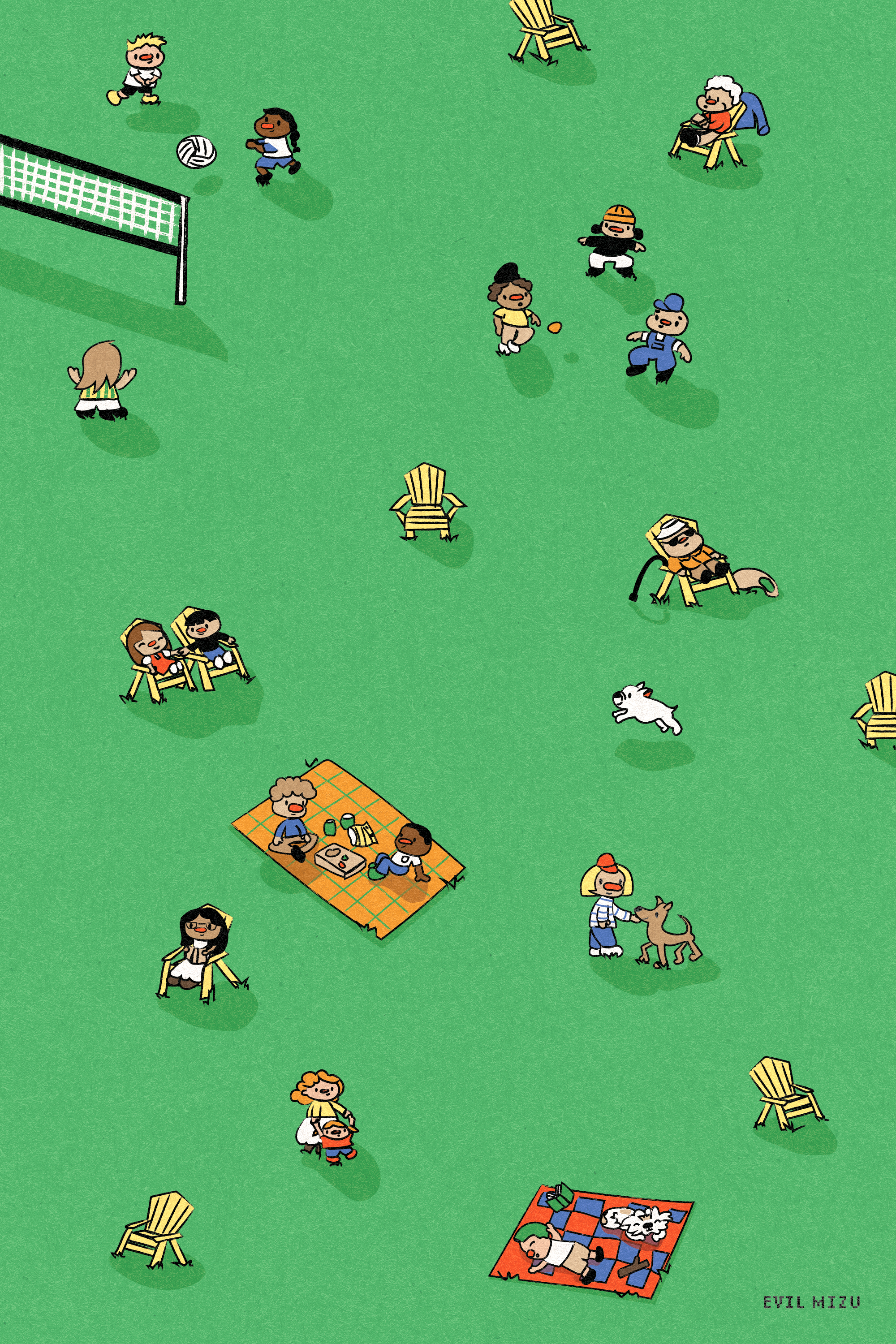 lol so anyways all of these characters are just “inspired” by the various activities and characters I saw in the lawn! I’M NOT STEALING ANYONES LIKENESS (EXCEPT FOR THE OLD MAN WHO FELL ASLEEP ON HIS CHAIR THAT IS DEFINITELY HIM)