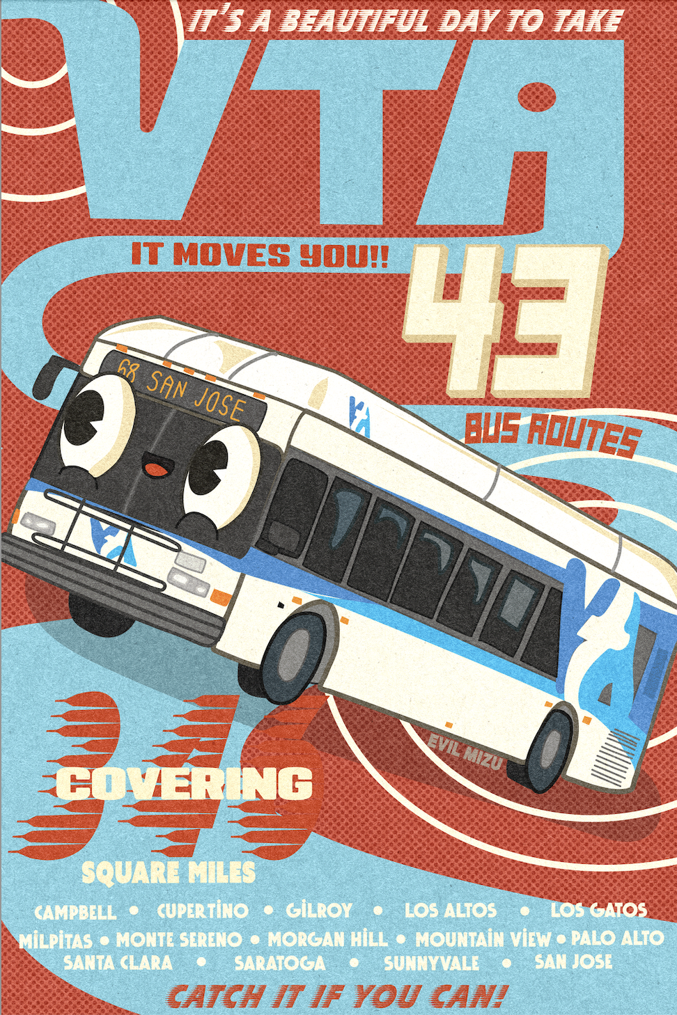 While researching for a new poster I’m always trying to come up with some clever slogan, but turns out the official slogan for the VTA is “Solutions that move you” which I just could not beat.